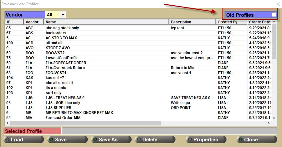 To do so, click on the ‘Profile’ button on the ORDER CREATE screen. In the ‘Save and Load Profiles’ pop-up, you can review and load your OLD format profiles by checking the ‘Old Profiles’ checkbox.