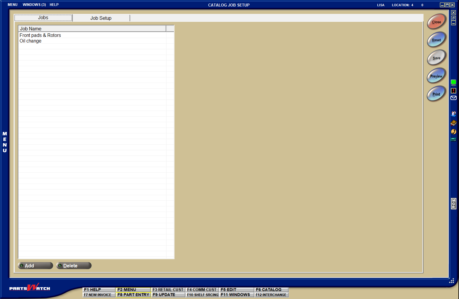 With this tool, you can use the CATALOG JOB SETUP screen accessed from Controls, System, Catalog Setup to create a “job”, such as a “brake job”, and include the several Part Types that could be associated with that “job”.