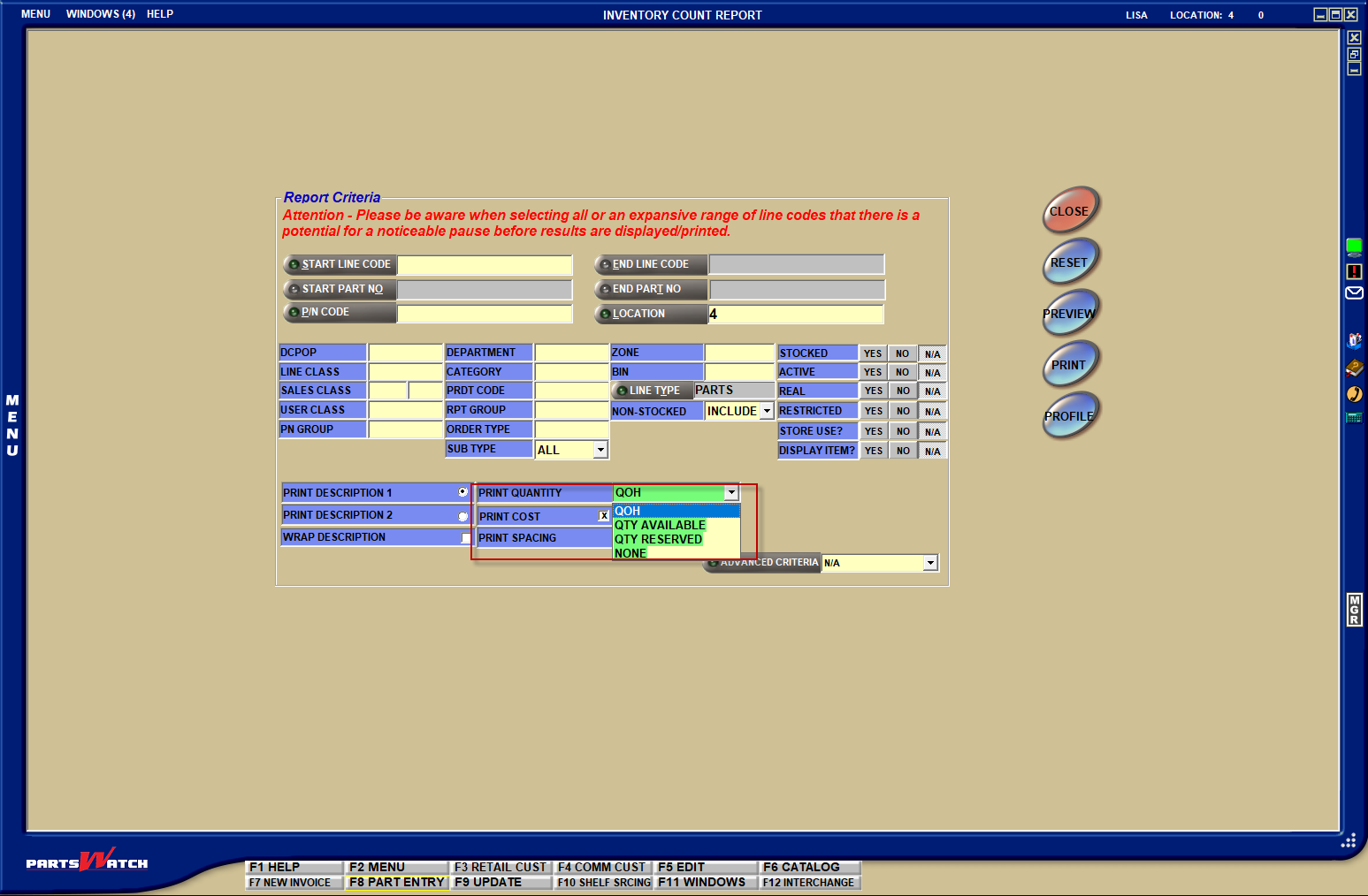 … about the PRINT QUANTITY drop-down on the INVENTORY COUNT REPORT screen?