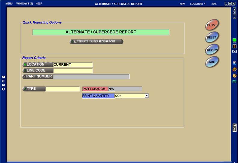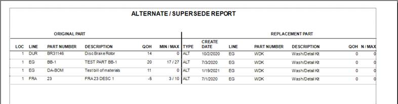 Using the Alternate/Supersede report found from Menu, Reports, Inventory, Alternate/Supersede Report.
