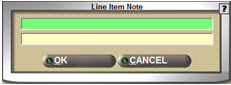 To add a helpful note or reminder to a part on a sales order, simply type an asterisk (*) in the LINE field, and one of two windows will pop up. If the ATTACH POS NOTE TO PREVIOUS PART checkbox is checked, the following window displays, allowing you to type up to two rows of 36 characters each.