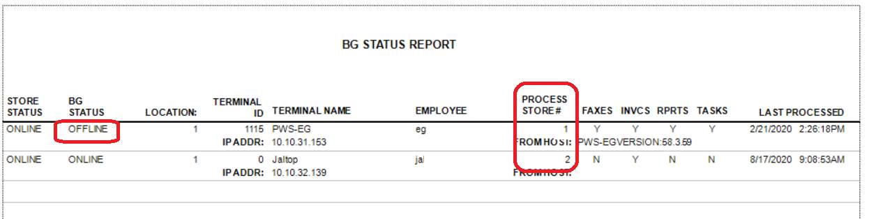 If you see the BG STATUS column is offline, you know your store’s Background Processor needs to be turned back on.